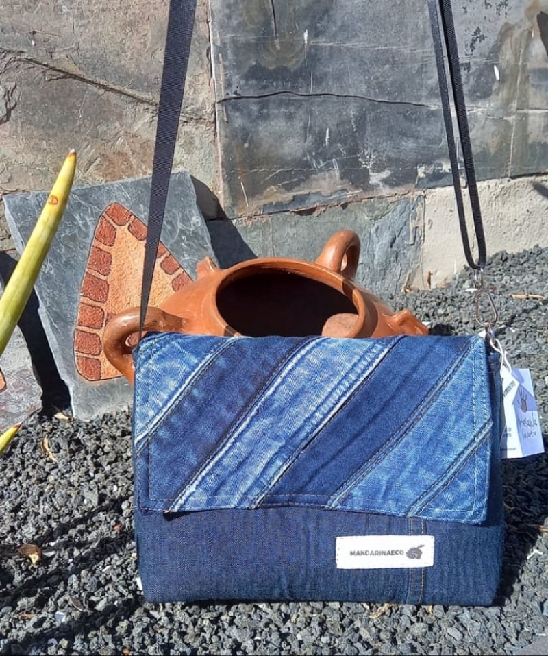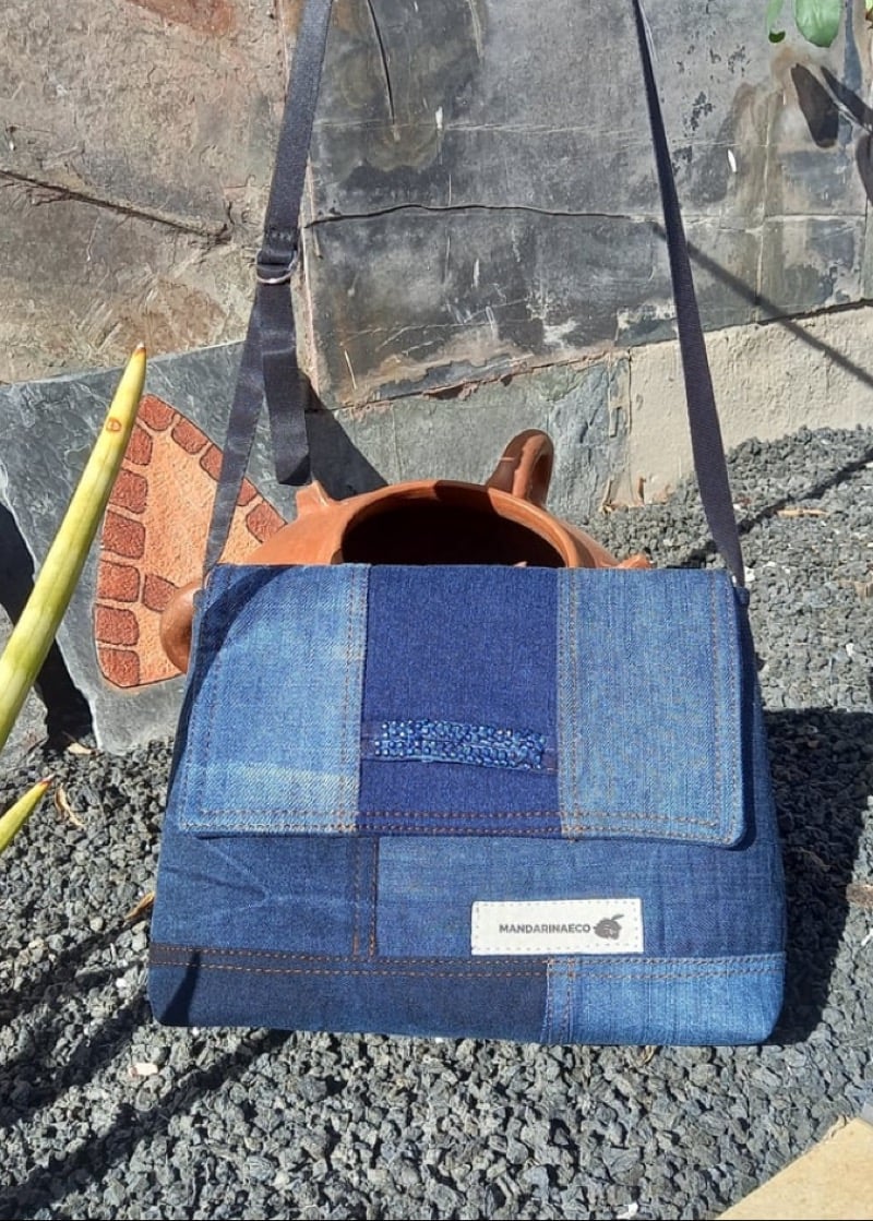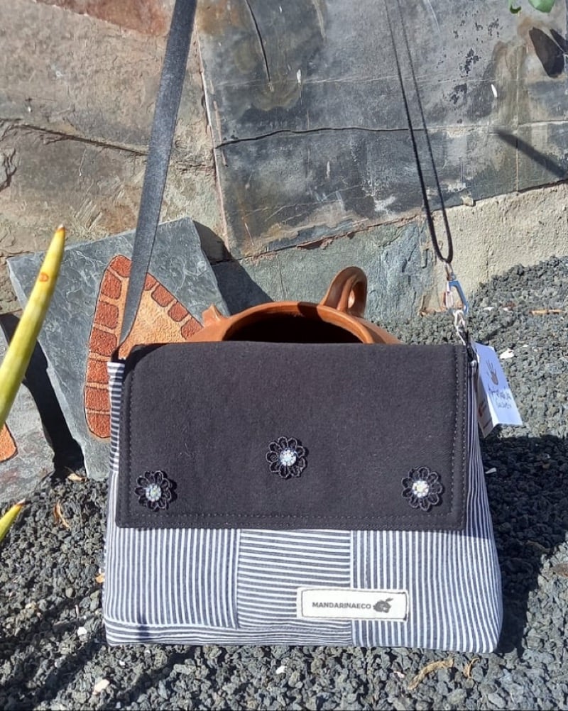 Bandolera rectangular con bolsillos exteriores e interior. Forrada, cierre solapa y asa ajustable.