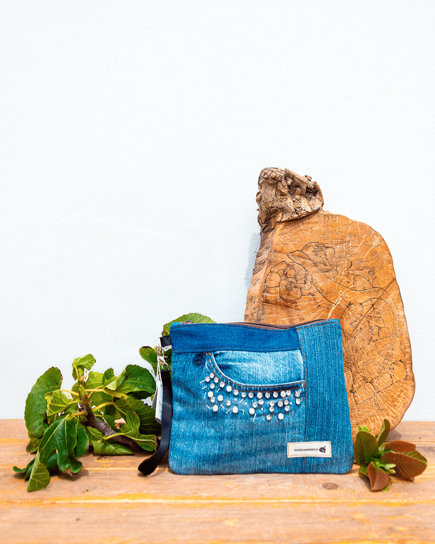 Cartera de mano con asa corta para mano. Forrada. Cierre cremallera.