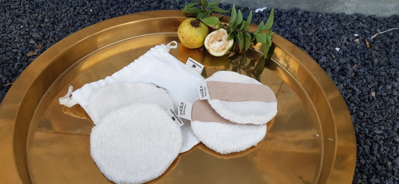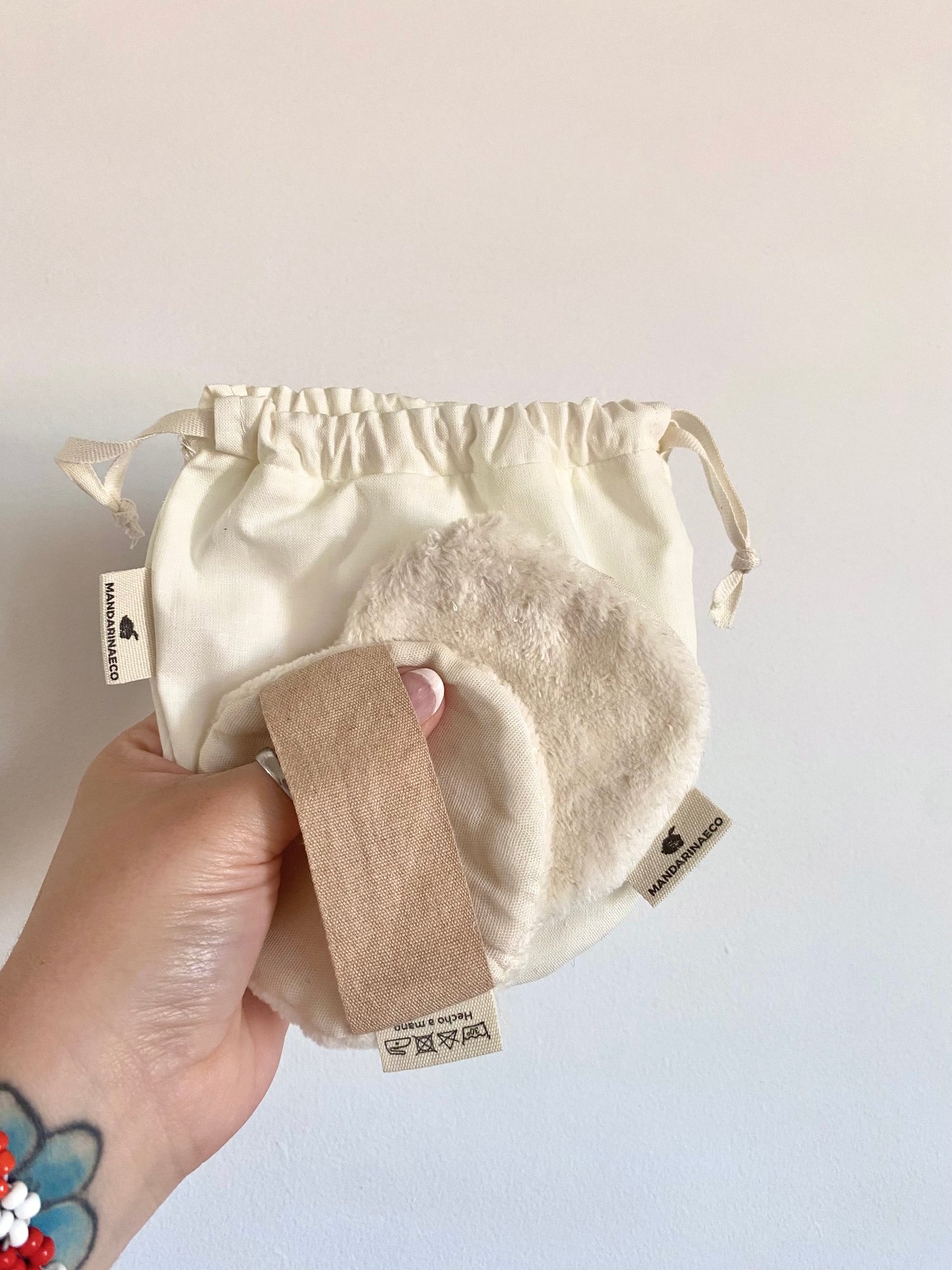 Pack de 2 discos, doble cara: exfoliante y desmaquillante. Con bolsita.